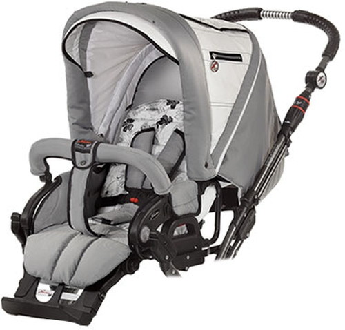 - Коляска с блоком компактно складывается, в сложенном виде может храниться в вертикальном положении, что очень удобно.