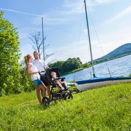 - Большие надувные колеса подходят для прогулок по любой местности, ведь гарантируют Hauck King Air Duo Set отличную амортизацию.