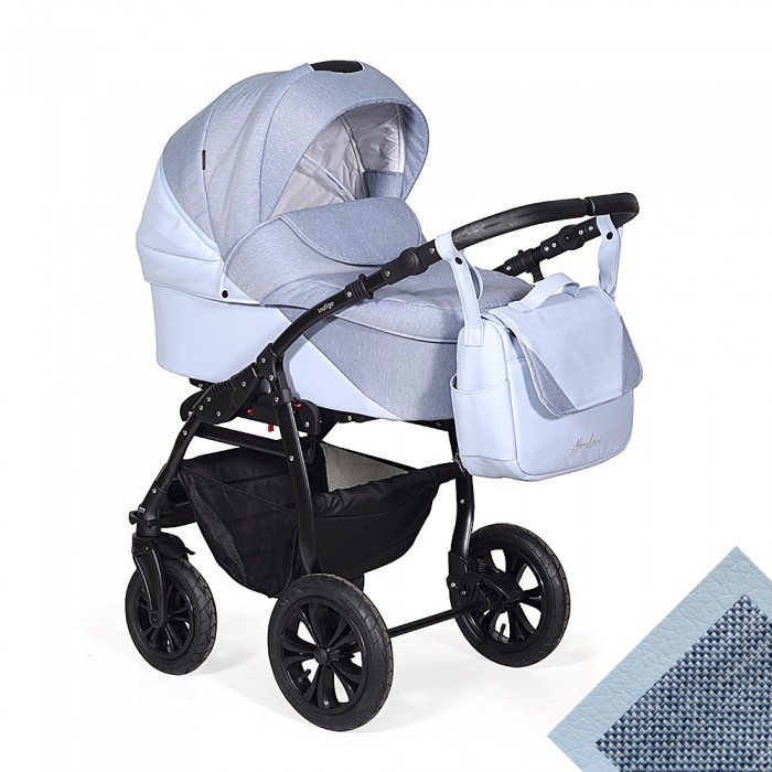 Детская коляска Indigo Alma Lux 2 в 1 Al 06 голубая кожа+джинс