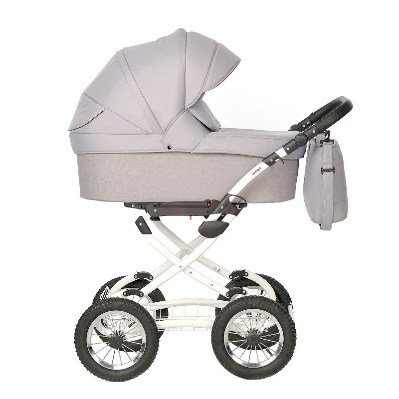 Классическая рама является воплощением устойчивости и надежности. Помповые колеса большого диаметра и шарнирные амортизаторы обеспечивают отличную проходимость модели и мягкий ход. Металлическая сетка для багажа имеет достаточную площадь для объемных вещей, бортики по периметру прекрасно справляются со своей задачей, но не ограничивают доступ к багажу. Коляска сконструирована с учетом климатических особенностей нашей страны. В высоком капюшоне предусмотрены вентиляционные окошки. Отворот накидки надежно защитит от порывов ветра.