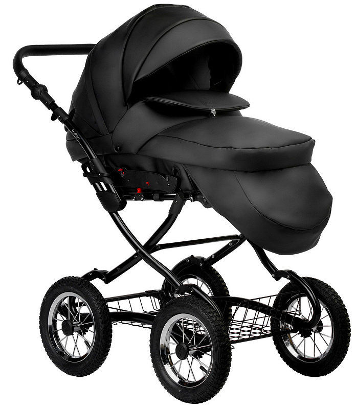 Рама коляски выполнена в классическом стиле, что обеспечивает ей устойчивость и прочность.