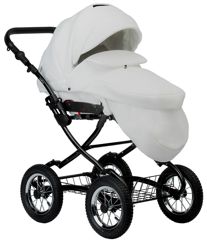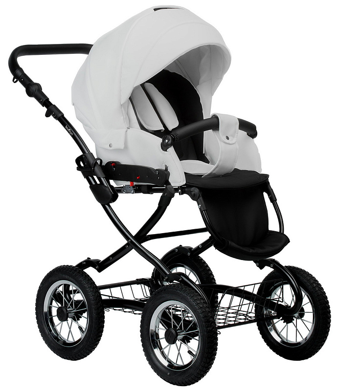 Рама коляски выполнена в классическом стиле, что обеспечивает ей устойчивость и прочность.