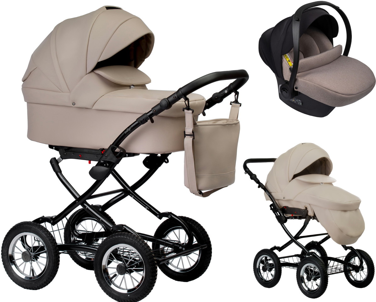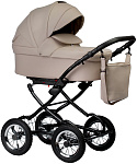 Детская коляска Indigo Barbara Eco Classic 3 в 1 с автокреслом Avionaut Cosmo Beige Be02 св.бежевая кожа