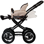 Рама коляски выполнена в классическом стиле, что обеспечивает ей устойчивость и прочность.