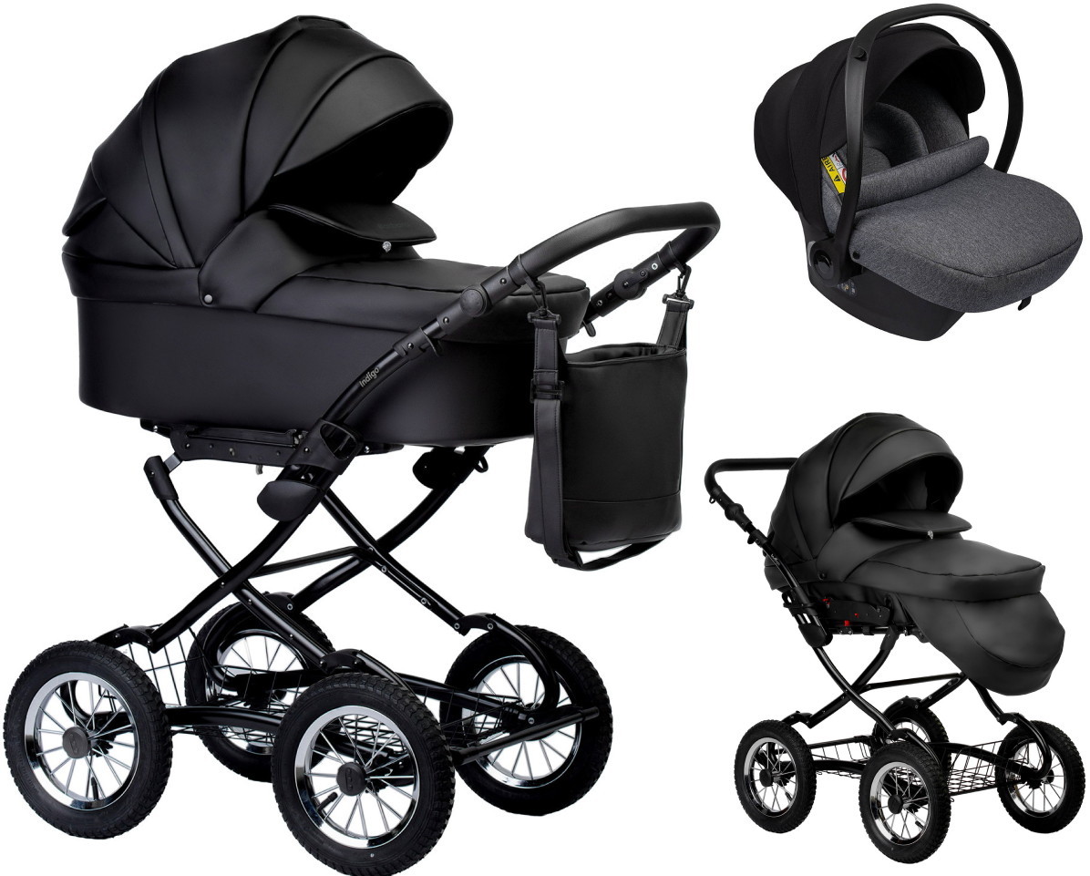 Детская коляска Indigo Barbara Eco Classic 3 в 1 с автокреслом Avionaut Cosmo Grey Be03 черная кожа