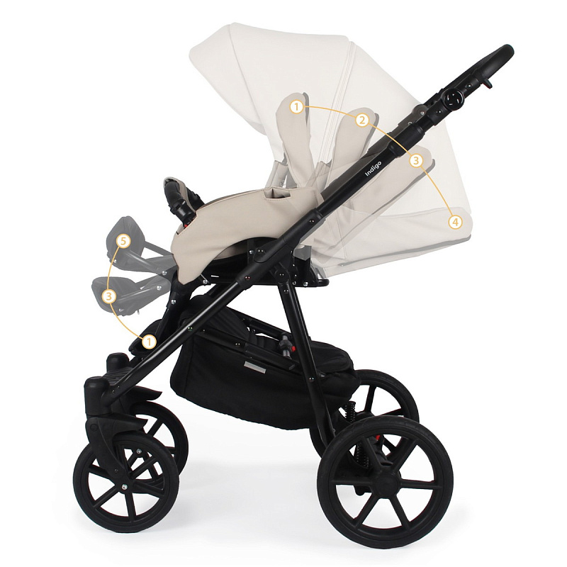 Детская коляска Indigo Broco Eco+F 3 в 1 Be 03 черная кожа