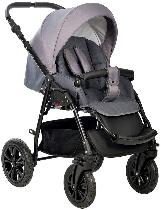 Большие надувные колеса позволяют легко преодолевать неровности дороги, а регулируемая амортизация обеспечивает плавный ход. Это особенно важно для малышей, которые еще не могут самостоятельно сидеть.