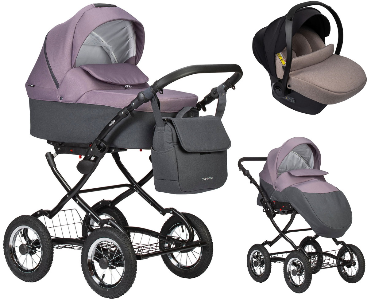 Детская коляска Indigo Charlotte Sity Classic 12 3 в 1 с автокреслом Avionaut Cosmo Beige Cs03 т.серый/фиолетовыйНет оценокХарактеристики