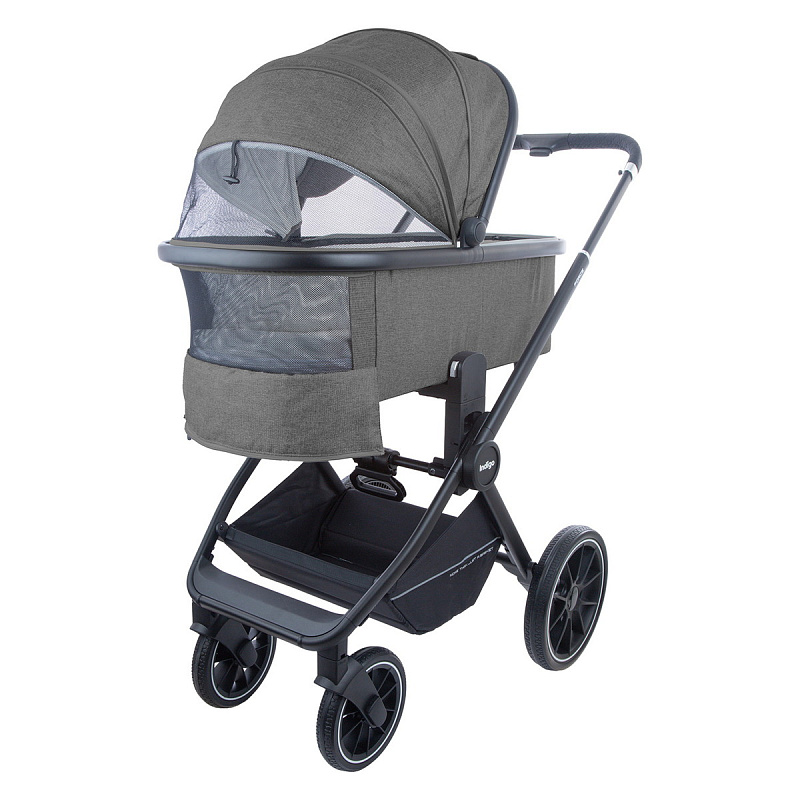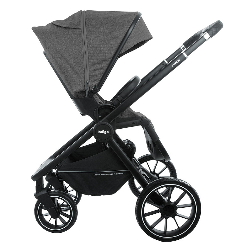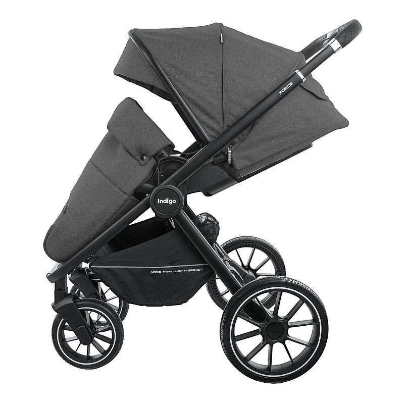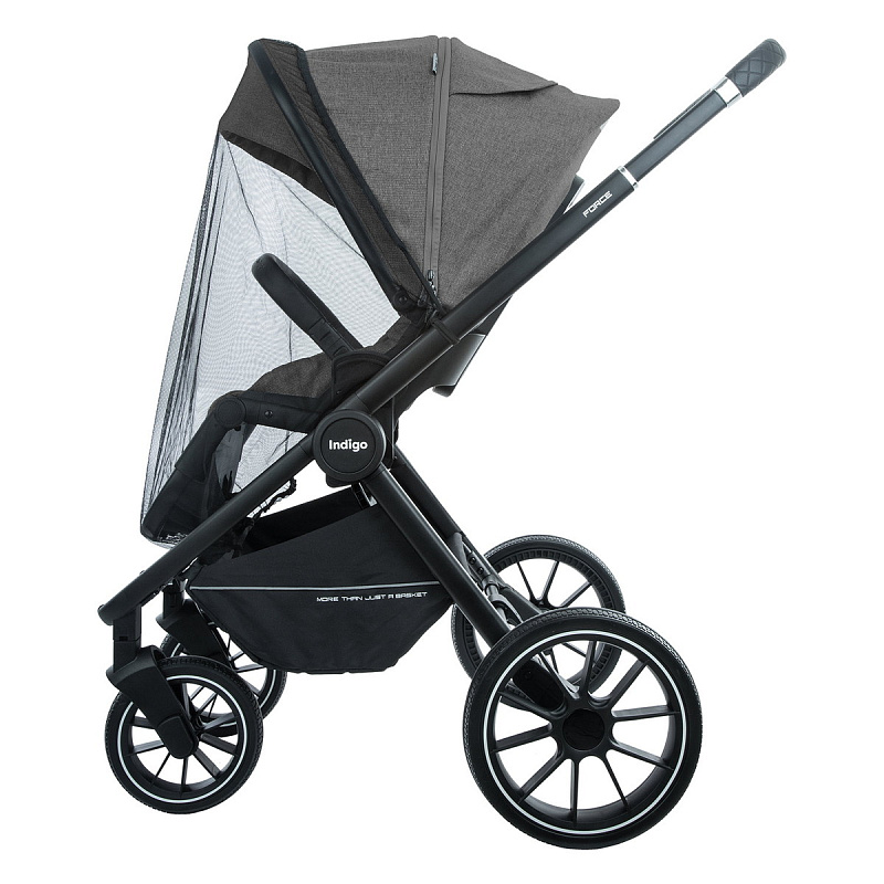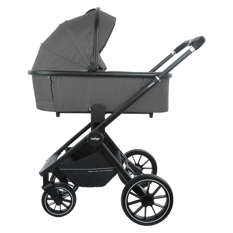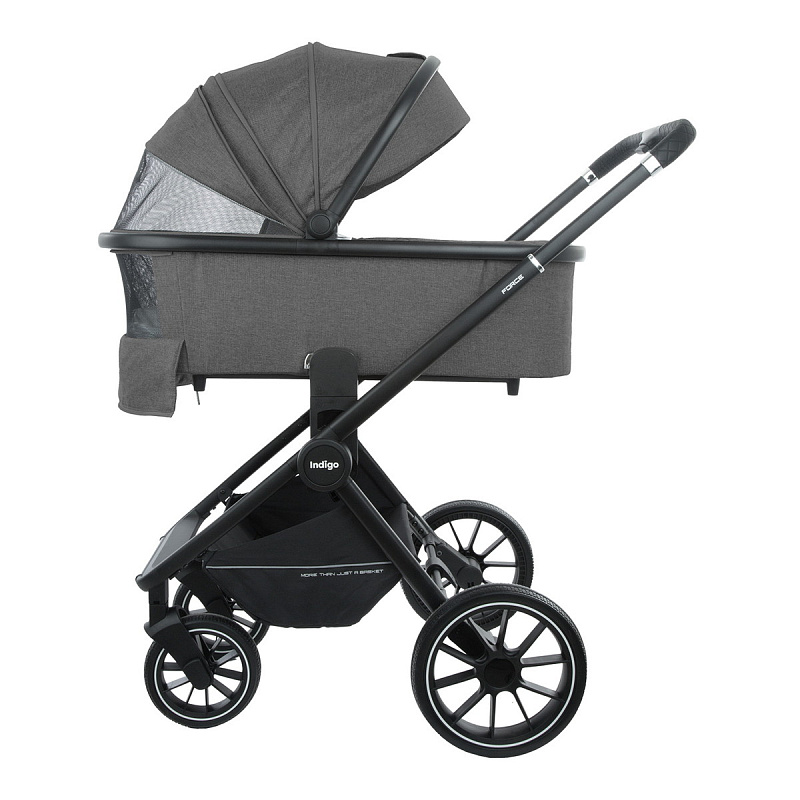 Стильная коляска INDIGO FORCE 2в1 для мам и пап, которые ценят качество и комфорт в ежедневном использовании. Модель оснащена ветрозащитным отворотом и теплой накидкой на ножки (в люльке и прогулочном блоке) для защиты малыша в любую непогоду. Большие резиновые колеса позволяют гулять даже по бездорожью и идеально подходят для зимнего периода. При этом, передние колеса - поворотные, что обеспечивает высокую маневренность на любых участках дороги. Чехол выполнен из водонепроницаемой ткани, поэтому вы можете не бояться за кроху, если попадете под дождь или снег! В комплекте есть стильная сумка для мамы и москитная сетка.