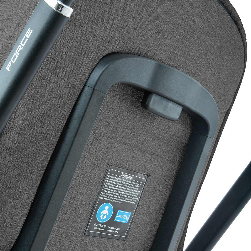 - съемный бампер из эко кожи с декоративной прострочкой вращается на 360°, что обеспечивает удобную фиксацию ребенка на сидении