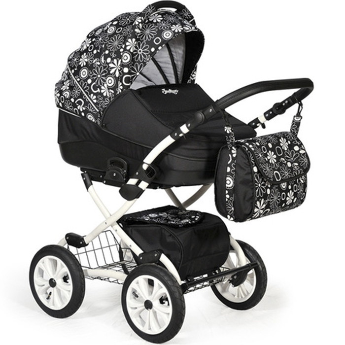 Детская коляска Indigo INDIGO Color Plus 2 в 1 R01 черный+белые цветы