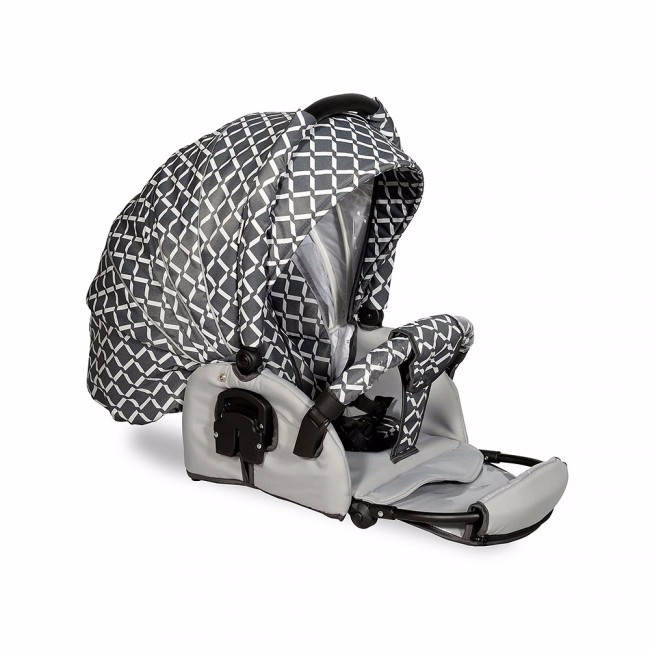 - Преимущество модульной коляски - в беспроблемном снятии и установке нужного блока. Легкая рама из алюминия быстро и компактно складывается.