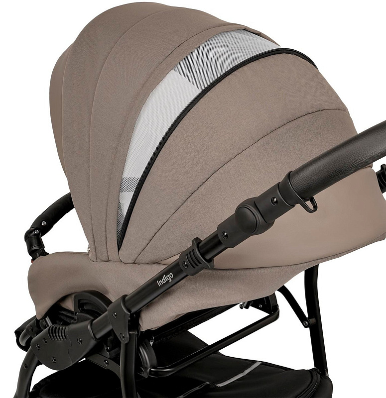 Детская коляска Indigo 3 в 1 - усовершенствованный хит, проверенный и оцененный покупателями по всей стране. Модель гармоничным образом сочетает в себе ткани различных фактур, также мы добавили вставки из экокожи. Округлый капюшон из нескольких клиньев отлично держит форму, создает ощущение динамичности и законченности линий. Со вставками из экокожи яркий дизайн стал еще и более практичным. Функционал также порадует родителей, ведь в коляске предусмотрено все, что необходимо для долгих, комфортных и безопасных прогулок.