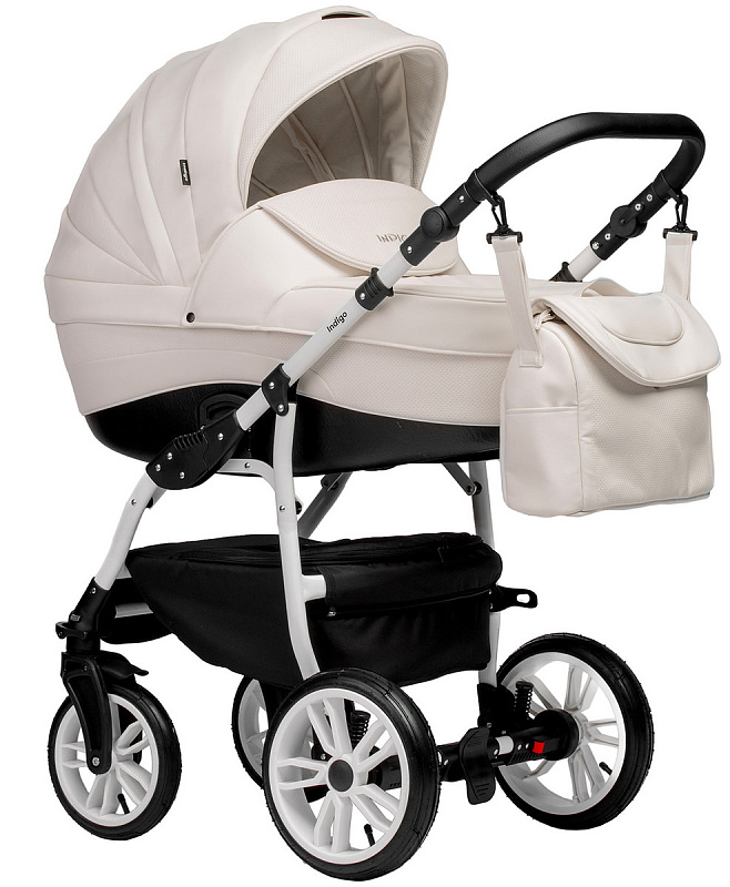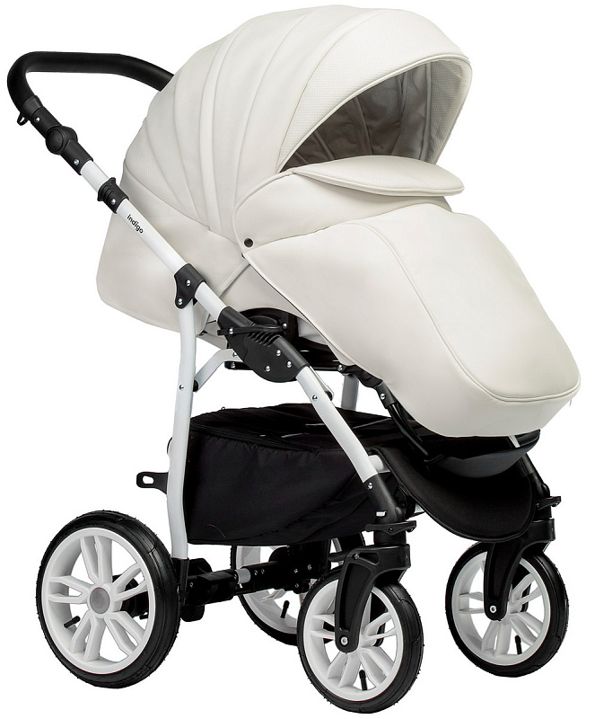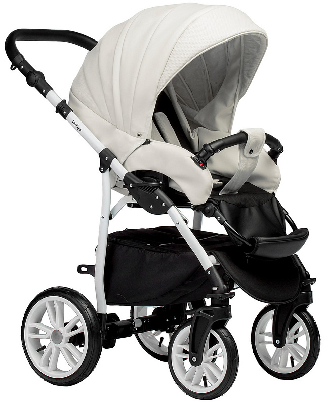 Детская коляска Indigo Indigo Special New 3 в 1 с автокреслом Avionaut Cosmo Black Is01 белая кожа