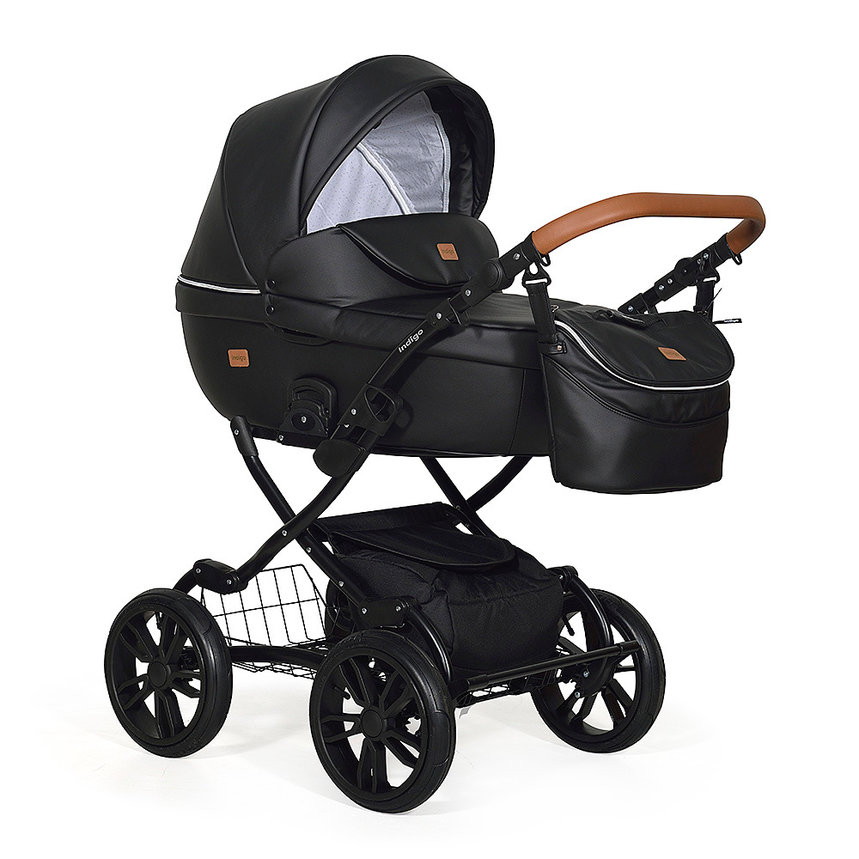 Детская коляска Indigo Marco City Plus 12" 2 в 1 Mc 07 черная кожа