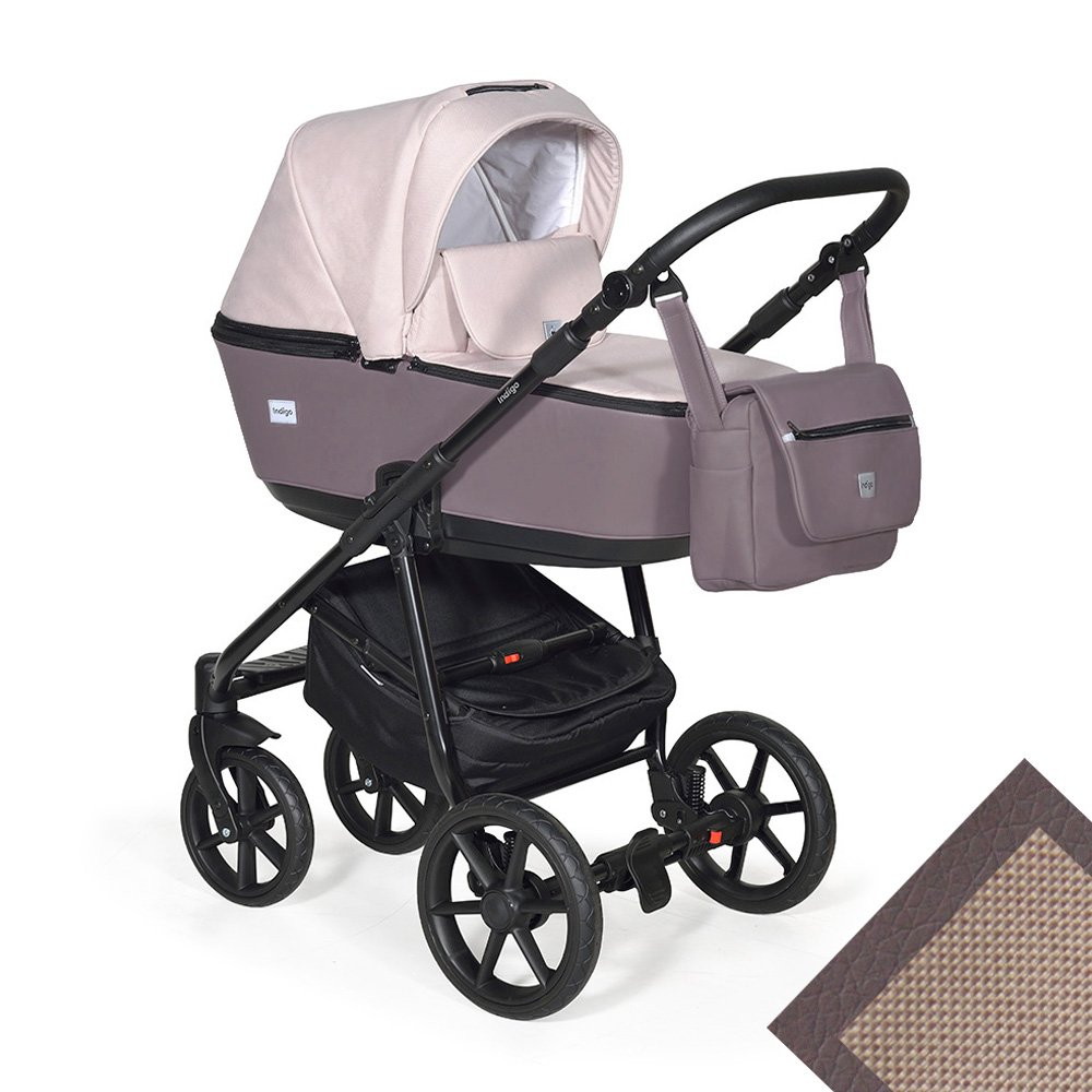 Детская коляска Indigo Marion Eco 2 в 1 Me 02 т.пудра кожа+св.розовый лен