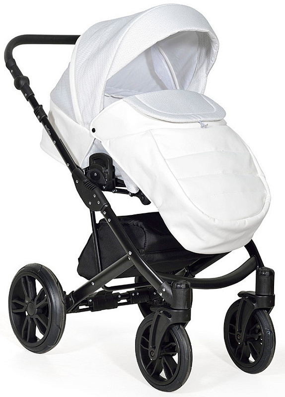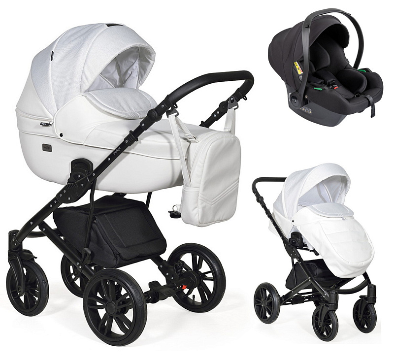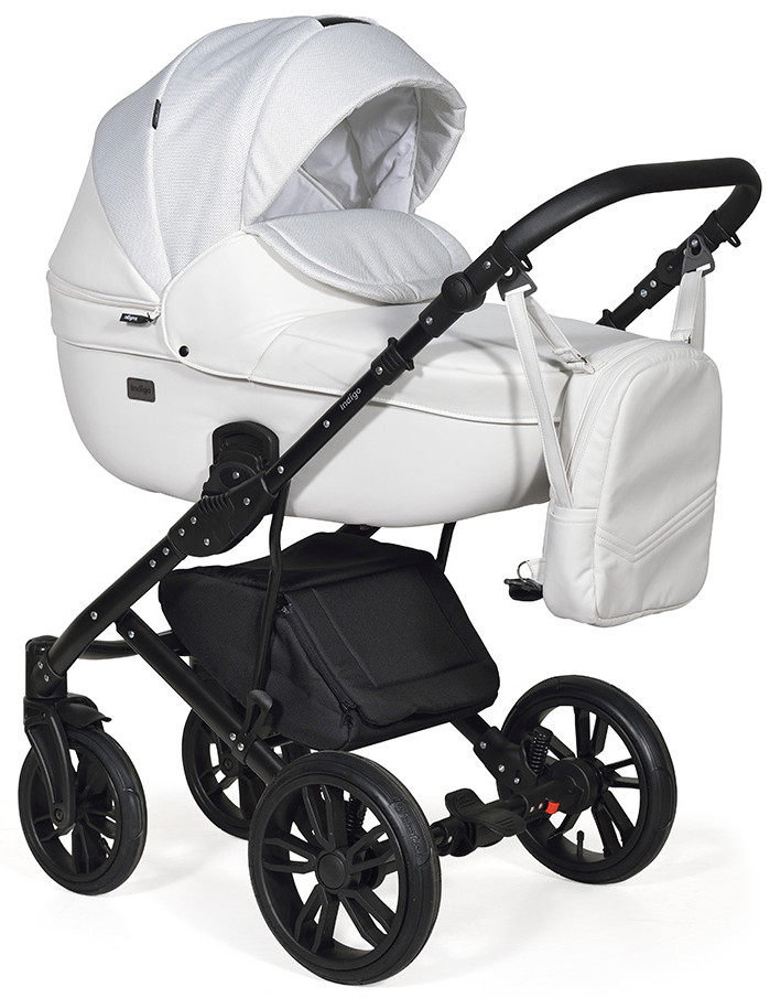 Детская коляска Indigo Mio 3 в 1 Mi 01 белая кожа+белый узор