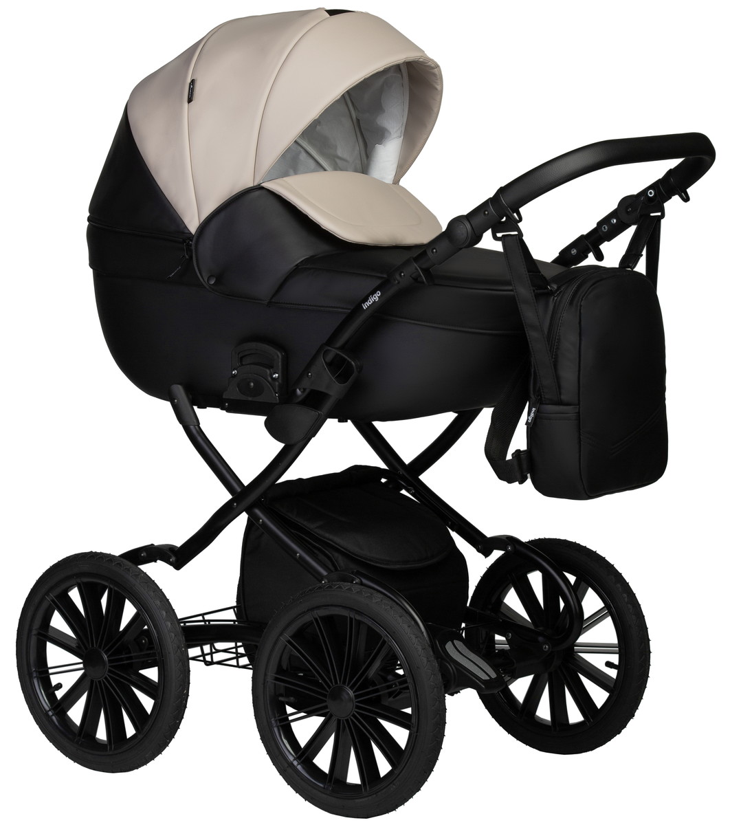 Детская коляска Indigo Mio Eco Plus 14 2 в 1 04 черная кожа+св.бежевая кожа