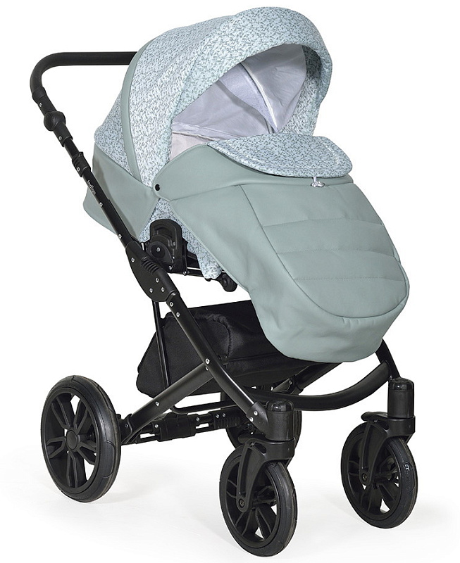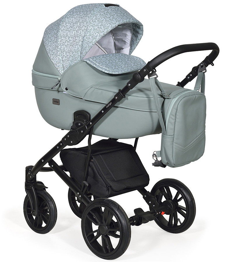 Детская коляска Indigo Mio+F 3 в 1 Mi 06 шалфей кожа+зеленый узор