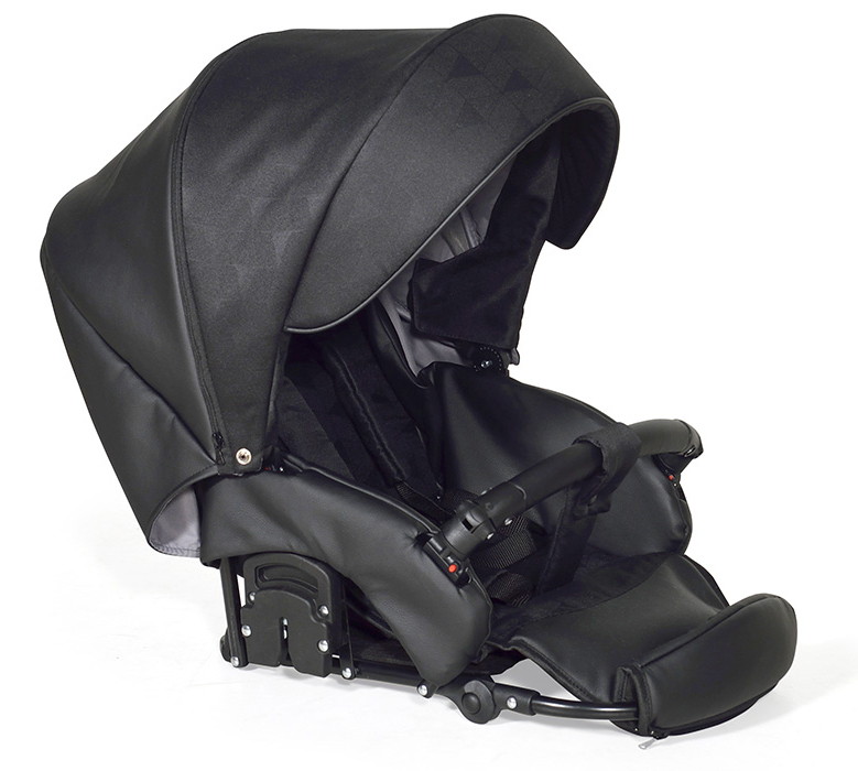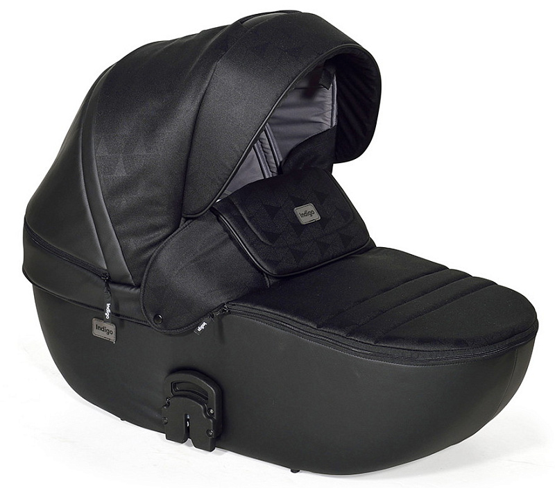 - Пластиковая литая люлька снаружи обшита экокожей, а капюшон выполнен из сочетания экокожи и текстиля с водоотталкивающей пропиткой