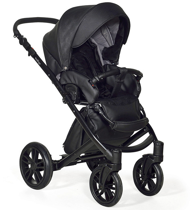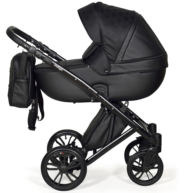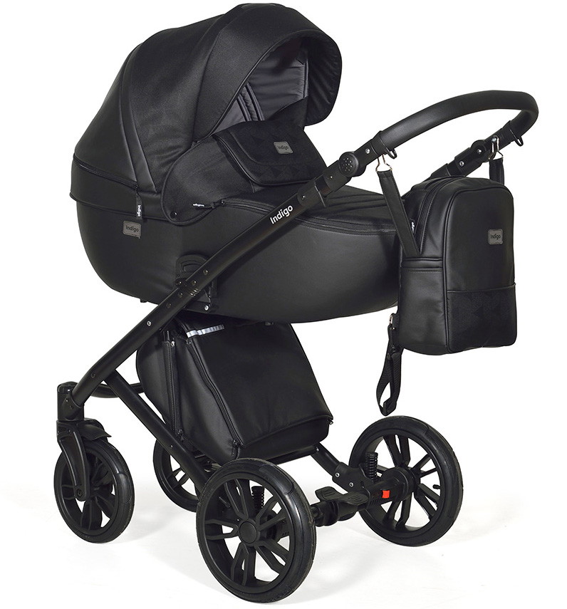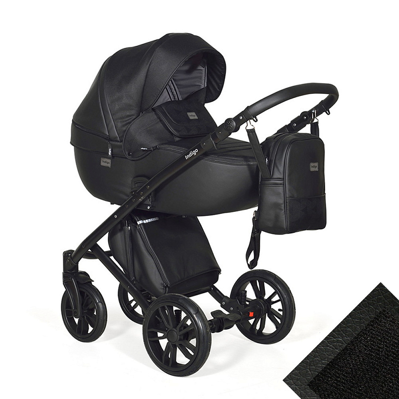 Детская коляска Indigo Porto 2 в 1 Po 08 черная кожа+черный узор