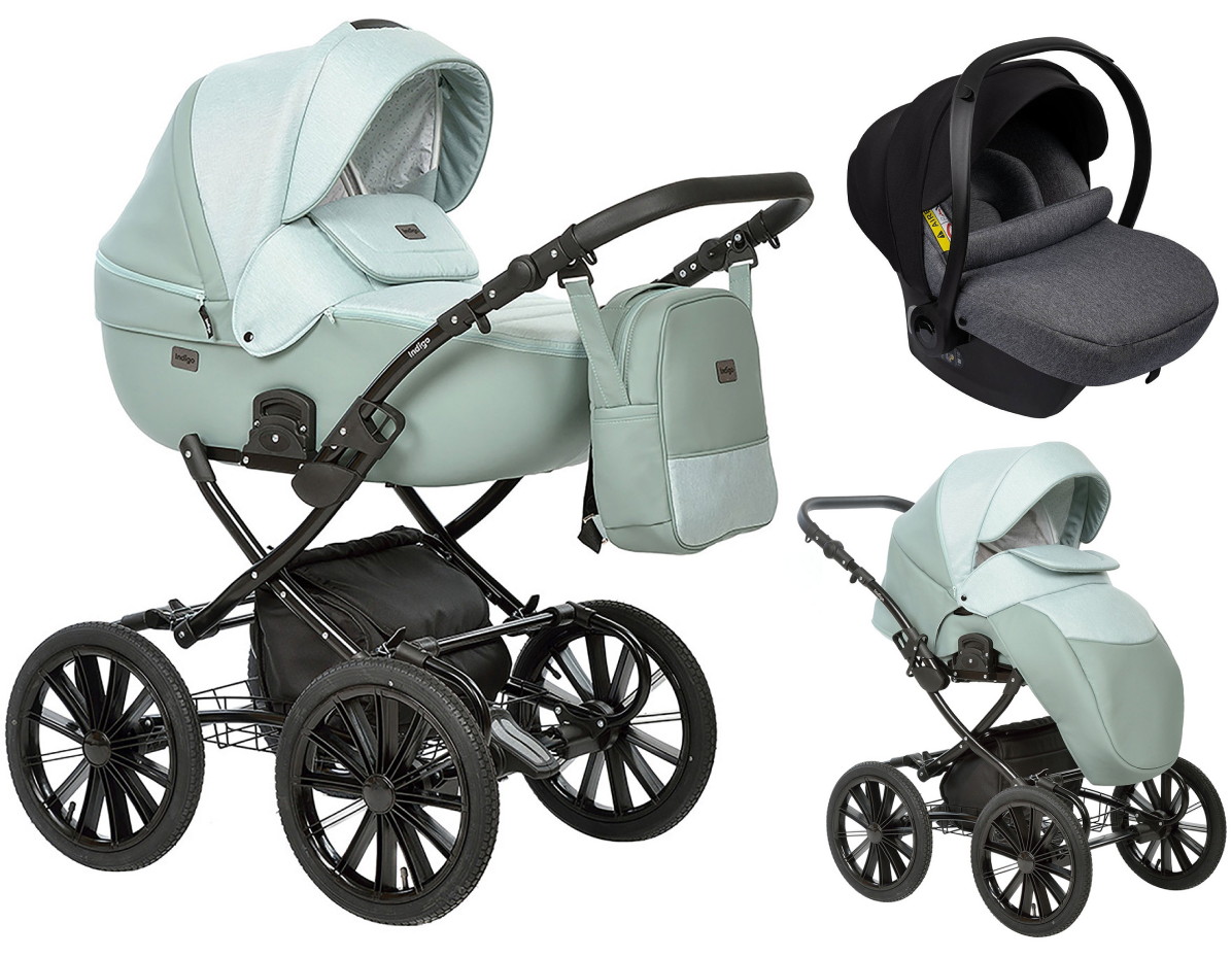 Детская коляска Indigo Porto Classic 14 3 в 1 с автокреслом Avionaut Cosmo Grey Po 05 шалфей кожа+шалфей лен