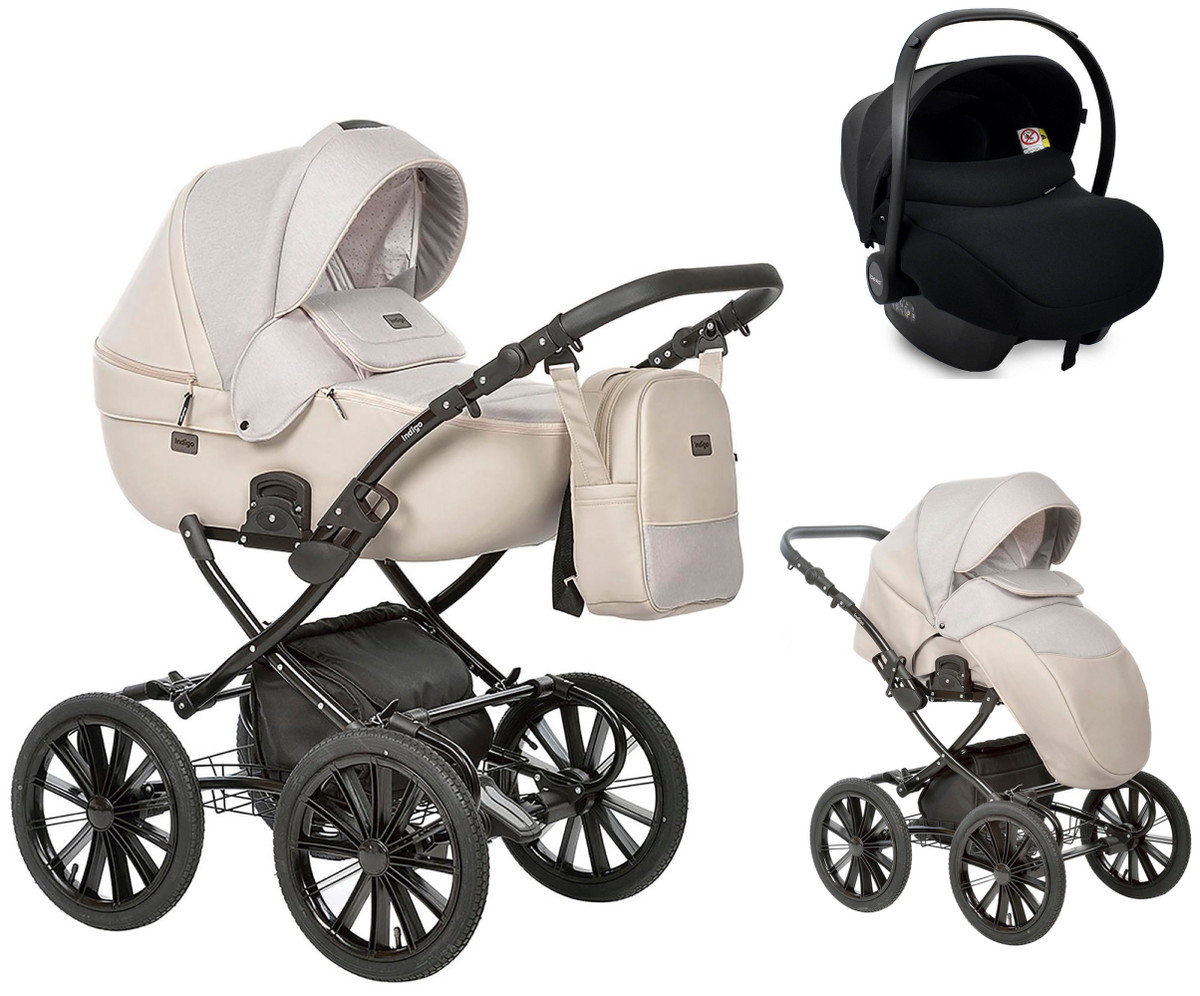 Детская коляска Indigo Porto Classic 14 3 в 1 с автокреслом Avionaut Cosmo Po 03 бежевая кожа+бежевый лен