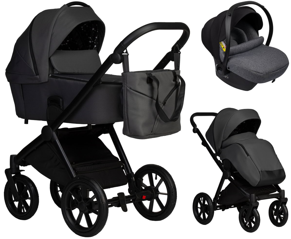 Детская коляска Indigo Solio 3 в 1 с автокреслом Avionaut Cosmo Grey So06 черный