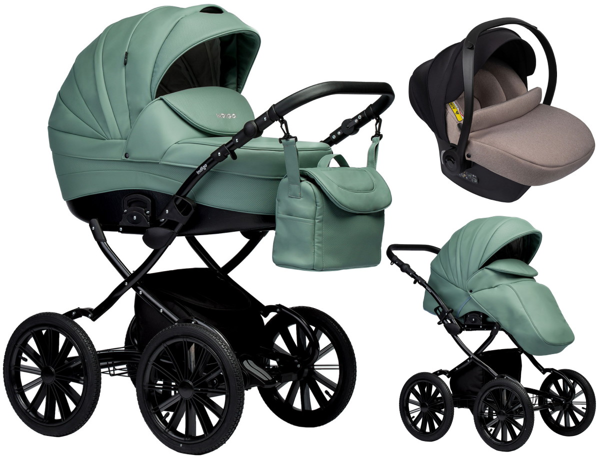 Детская коляска Indigo Special Plus 3 в 1 с автокреслом Avionaut Cosmo Beige Is05 шалфей кожа