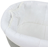 Люлька у коляски пластиковая литая, она надежно защитит маленького пассажира. Снаружи коляска полностью обшита экокожей, а внутренний чехол выполнен из 100% хлопка - гипоаллергенного и приятного для младенца. Крепится он на липучки и легко снимается, если нуждается в стирке. Внутри люльки пришиты удобные кармашки для необходимых мелочей, которые в самый неподходящий момент обычно прячутся в недрах маминой сумки. Подголовник регулируется снаружи - можно менять положение по мере необходимости без какого-либо дискомфорта для малыша. Для холодной погоды на теплой накидке предусмотрен ветрозащитный отворот, который фиксируется магнитной застежкой. В сочетании с большим козырьком он надежно скроет маленькое сокровище от нежелательных любопытных взглядов. В жаркую погоду для вентиляции открывается секция на молнии из сетки. Дно люльки спроектировано таким образом, что, снятая с рамы, она безопасно укачивается на ровной поверхности и может служить полноценной колыбелью.