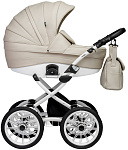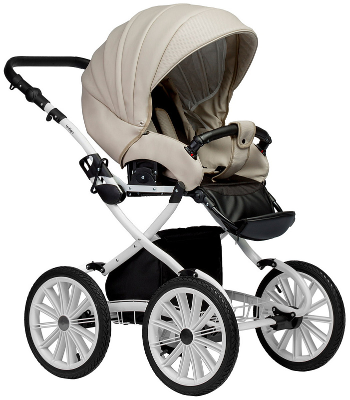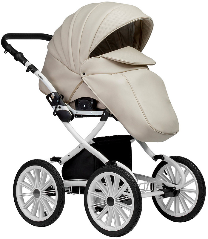 Люлька у коляски пластиковая литая, она надежно защитит маленького пассажира. Снаружи коляска полностью обшита экокожей, а внутренний чехол выполнен из 100% хлопка - гипоаллергенного и приятного для младенца. Крепится он на липучки и легко снимается, если нуждается в стирке. Внутри люльки пришиты удобные кармашки для необходимых мелочей, которые в самый неподходящий момент обычно прячутся в недрах маминой сумки. Подголовник регулируется снаружи - можно менять положение по мере необходимости без какого-либо дискомфорта для малыша. Для холодной погоды на теплой накидке предусмотрен ветрозащитный отворот, который фиксируется магнитной застежкой. В сочетании с большим козырьком он надежно скроет маленькое сокровище от нежелательных любопытных взглядов. В жаркую погоду для вентиляции открывается секция на молнии из сетки. Дно люльки спроектировано таким образом, что, снятая с рамы, она безопасно укачивается на ровной поверхности и может служить полноценной колыбелью.