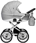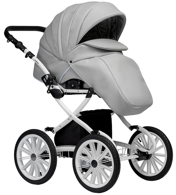Люлька у коляски пластиковая литая, она надежно защитит маленького пассажира. Снаружи коляска полностью обшита экокожей, а внутренний чехол выполнен из 100% хлопка - гипоаллергенного и приятного для младенца. Крепится он на липучки и легко снимается, если нуждается в стирке. Внутри люльки пришиты удобные кармашки для необходимых мелочей, которые в самый неподходящий момент обычно прячутся в недрах маминой сумки. Подголовник регулируется снаружи - можно менять положение по мере необходимости без какого-либо дискомфорта для малыша. Для холодной погоды на теплой накидке предусмотрен ветрозащитный отворот, который фиксируется магнитной застежкой. В сочетании с большим козырьком он надежно скроет маленькое сокровище от нежелательных любопытных взглядов. В жаркую погоду для вентиляции открывается секция на молнии из сетки. Дно люльки спроектировано таким образом, что, снятая с рамы, она безопасно укачивается на ровной поверхности и может служить полноценной колыбелью.