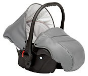 Детская коляска изготовлена из качественных и безопасных материалов. Люлька состоит из литого пластика, внутренний чехол произведен из натурального хлопка. Шасси оснащены центральным задним тормозом, пружинными амортизаторами. Прогулочный блок имеет регулируемые подножку, спинку и капюшон.
