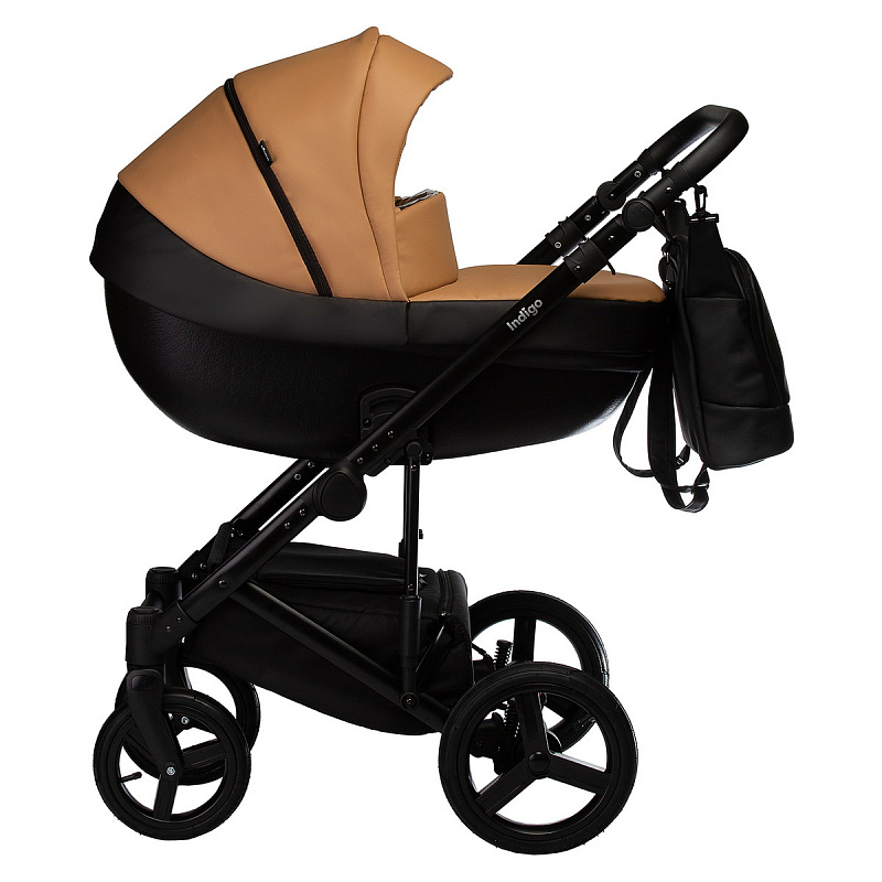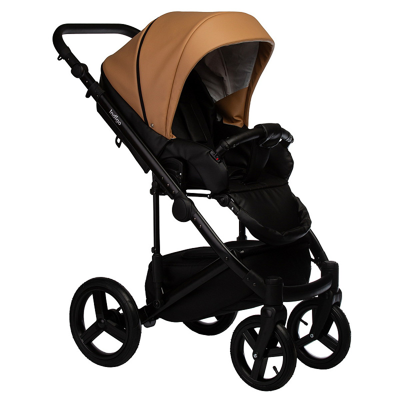 Детская коляска Indigo Tour Eco 2 в 1 Te05 черная кожа+рыжая кожа