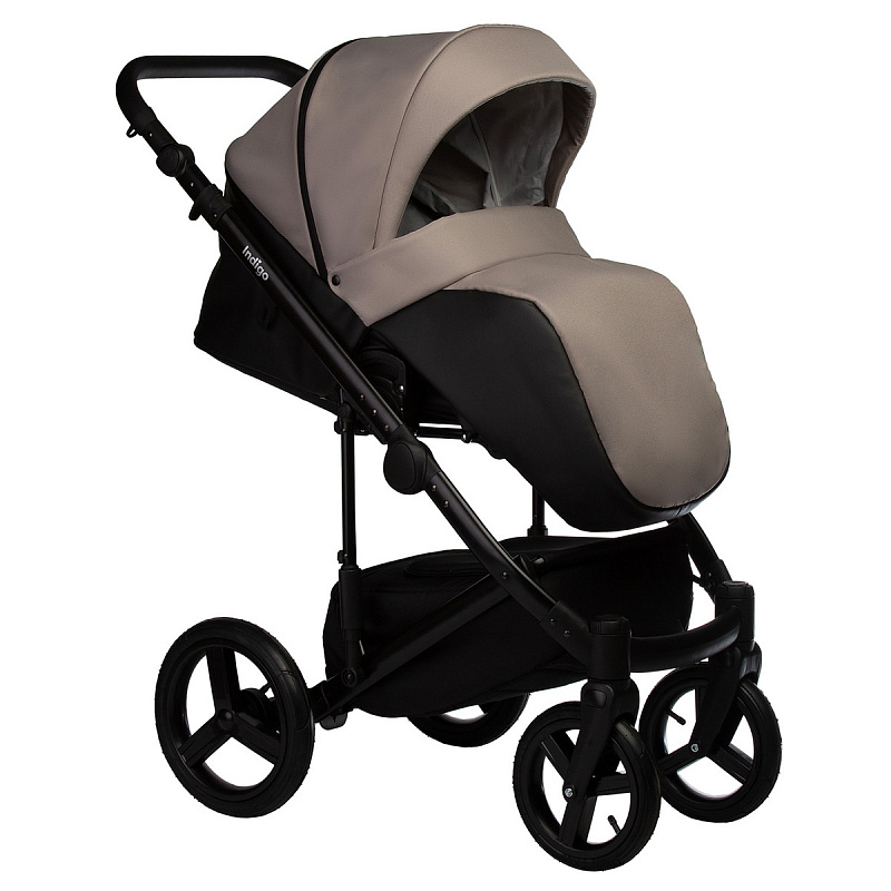 Детская коляска Indigo Tour Eco 2 в 1 Te09 черная кожа+серо-бежевый