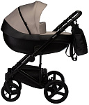 Детская коляска Indigo Tour Eco 3 в 1 с автокреслом Avionaut Cosmo Beige Te09 черная кожа+серо-бежевый