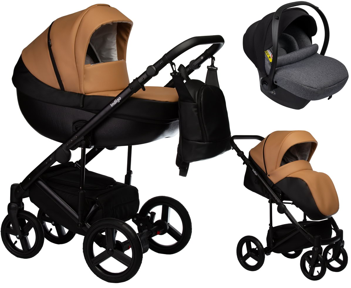 Детская коляска Indigo Tour Eco 3 в 1 с автокреслом Avionaut Cosmo Grey Te05 черная кожа+рыжая кожа