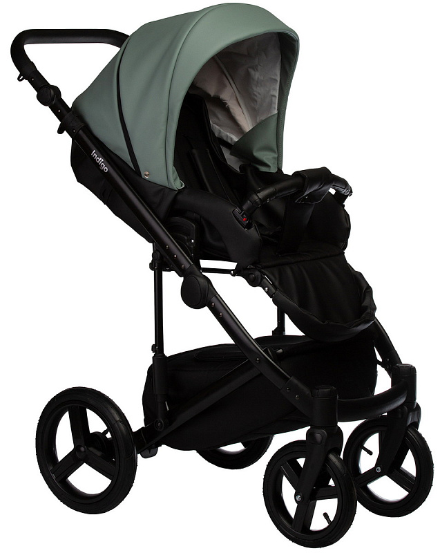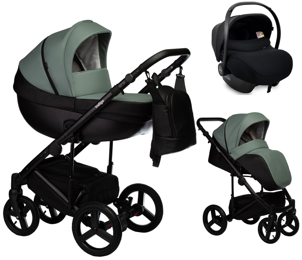 Детская коляска Indigo Tour Eco 3 в 1 с автокреслом Avionaut Cosmo Black Te03 черная кожа+шалфей кожа