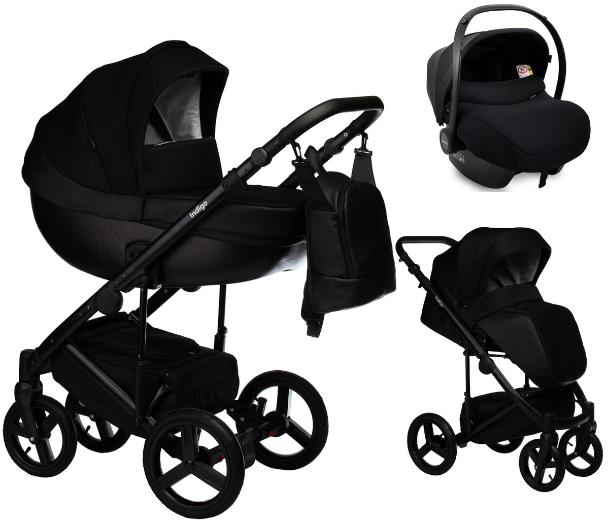 Детская коляска Indigo Tour Eco 3 в 1 с автокреслом Avionaut Cosmo Black Te07 черная кожа+черныйНет оценокХарактеристики