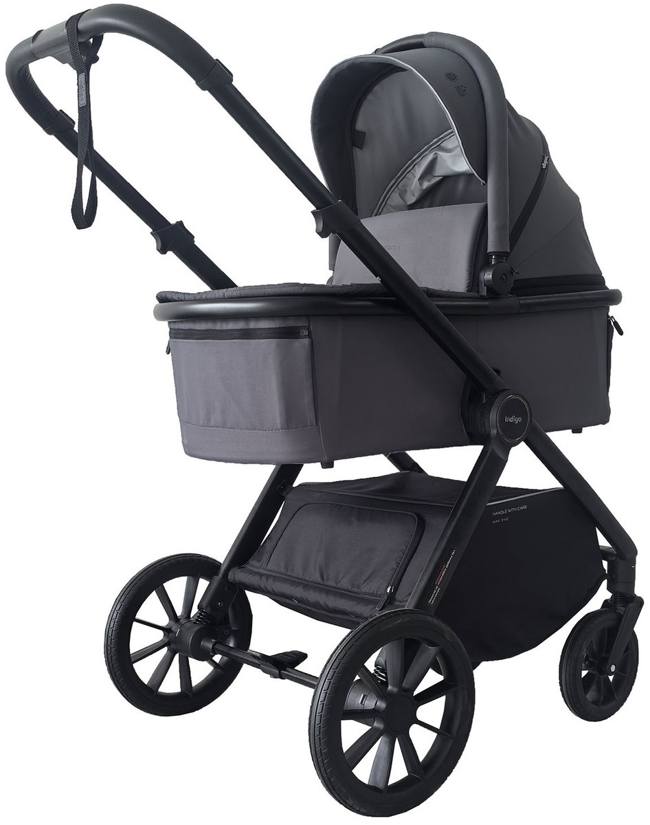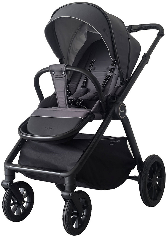 Коляска TRION 3 в 1 от бренда Indigo — универсальная модель с тремя модулями: люлькой для новорожденного, прогулочным блоком и люлькой-переноской.