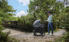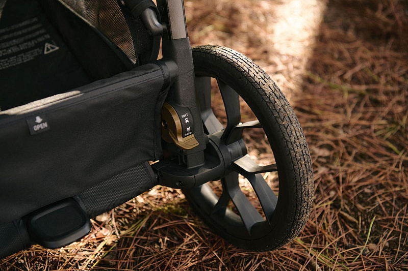 Ширина шасси всего 55 см. Узкое шасси с телескопической ручкой пройдет в самый узкий дверной проем и маленький лифт. Мощные колеса с протектором (передние 214 мм, задние 305 мм) легко преодолеют любые препятствия. Уникальная структура резиновых шин состоит из двух слоев, ведет к снижению передаваемых на люльку и на ручку коляски вибраций и нагрузок, вызванных неровностями грунта.