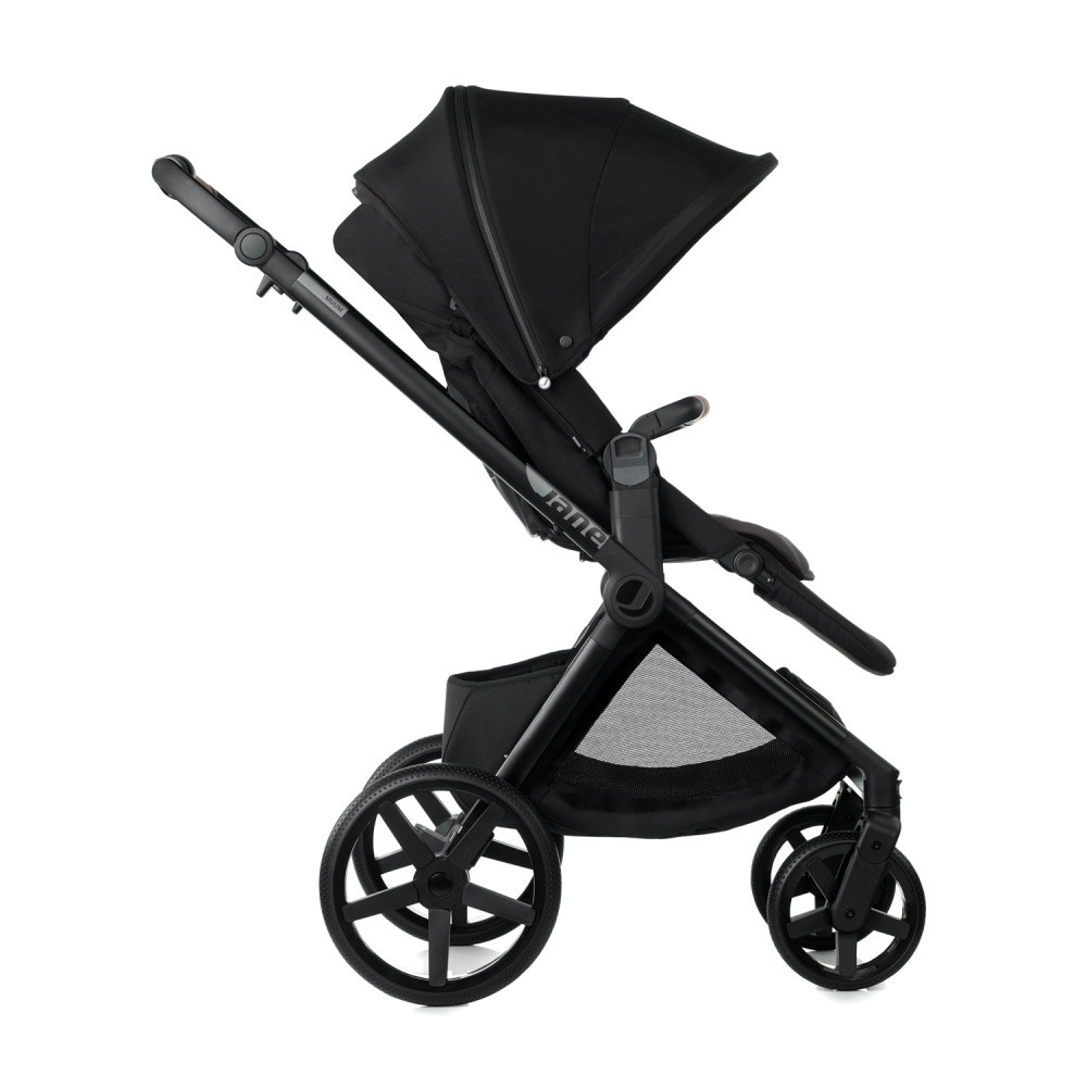 - Коляска совместима с автокреслами Jane, благодаря встроенной системе Pro-Fix или с автомобильными сиденьями других брендов с использованием адаптеров.