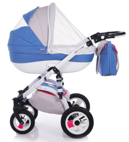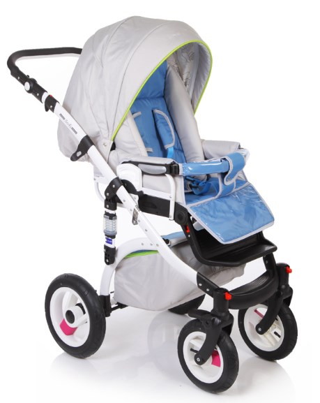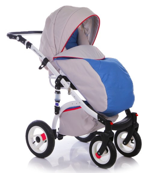 Количество колёс, размеры колес2 передних надувных, поворотных колеса (10 дюймов),с фиксацией и с противоударной амортизацией; Надувные задние колёса (12 дюймов), с регулируемой амортизацией;