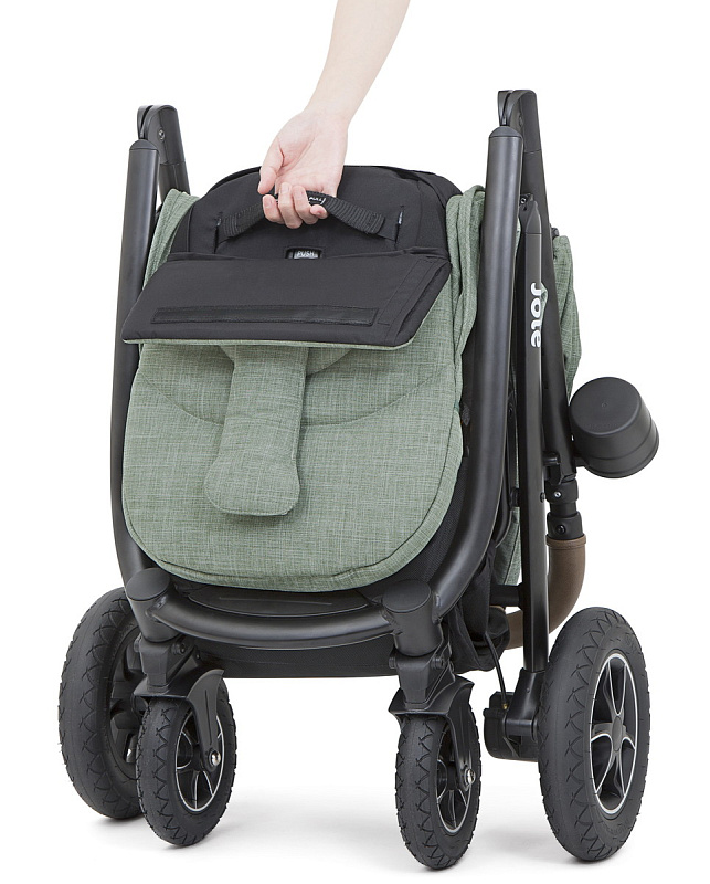 - Складывается коляска одним движением – просто потяните за ремень посередине сиденья.