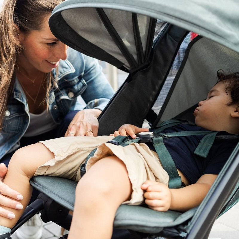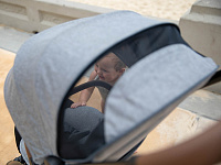 Если на прогулке ваш малыш захочет спать, то просто опустите спинку, расстегнув молнию, или воспользуйтесь регулировкой при помощи системы ремней. Удлиненная спинка создает комфорт даже подросшему ребенку, обеспечивая отличную поддержку головы, в том числе в положение сна. В объемном капоре с защитой UPF50 предусмотрена дополнительная сетчатая секция: удачное решение для лучшей вентиляции в жаркую погоду, а также присмотра за малышом родителями.