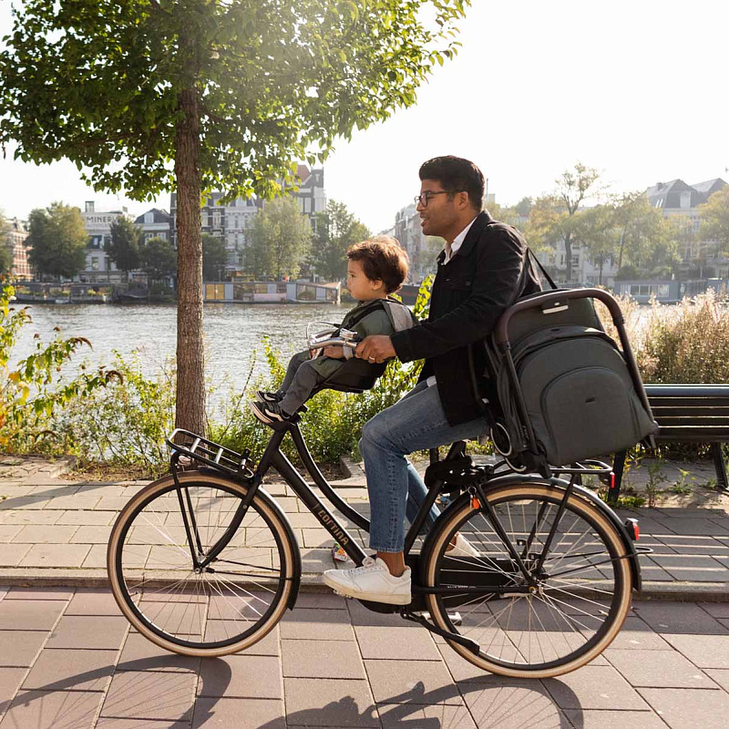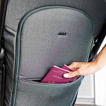 Ручка сплошной конструкции высотой 105 см и поворотные передние колеса позволят вам с легкостью маневрировать на узких и извилистых дорогах. А еще у коляски есть отличная амортизация на всех колесах, сглаживающая неровности дорожного покрытия, и багажная корзина, в которой найдется местечко и для игрушек, и для покупок. А сзади сиденья есть карман для документов, планшета, небольшого ноутбука.