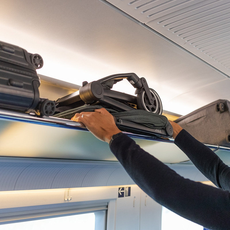 Суперлегкая (всего 6 кг) прогулочная коляска Joolz Aer складывается за 2 секунды до очень компактных размеров, что позволяет брать ее с собой на борт самолета в качестве ручной клади. Для сложения коляски вам не придется прилагать каких-либо усилий. Просто нажмите на кнопку, расположенную на ручке, и опустите вниз. Никаких лишних движений. Инновационный дизайн и элементы из эко-кожи на родительской ручке не оставят вас на прогулке без внимания окружающих.