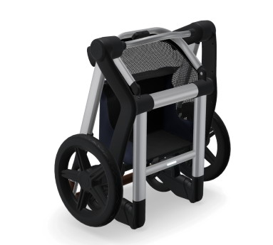 - Складывается до компактных размеров. В сложенном виде стоит вертикально без опоры. Можно сложить как с прогулочным блоком, так и без него