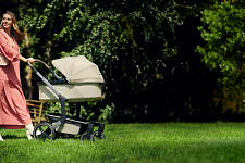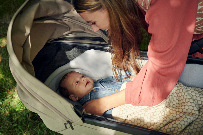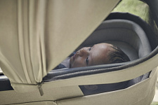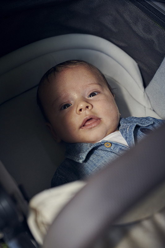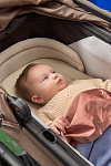 - Внутри люльки мягкие бортики и дышащий матрасик с чехлом из нежного, приятного на ощупь материала лиоцелл (Lyocell), подкладкой rPET и мягким бортиком в изголовье для дополнительной защиты малыша