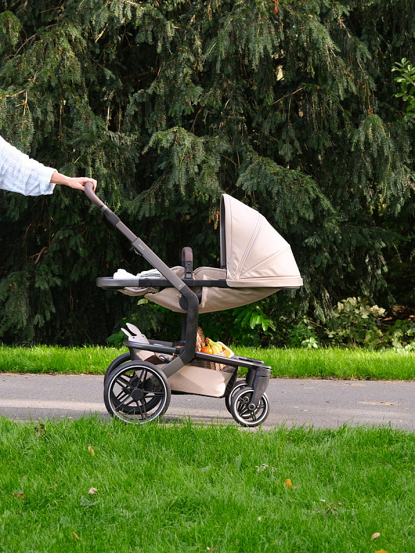 - Высокая посадка дает возможность использовать коляску вместо стульчика в кафе.